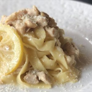 おうちでつくる。沖縄県産鶏肉とたまねぎの檸檬クリームソース 生フェットチーネ パスタ