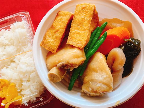 てびち2、大根1、人参1、こんにゃく1、厚揚げ1、昆布2、さやいんげん2