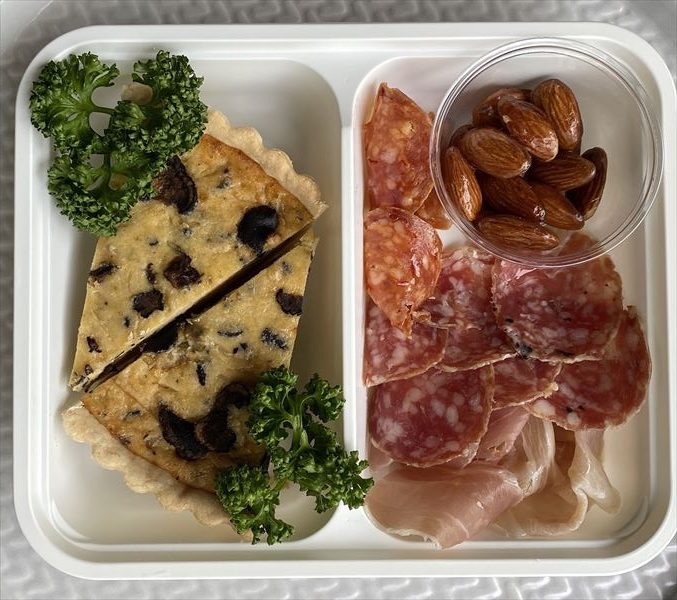 新玉ねぎを使用したキッシュと塩味が心地よい生ハム・サラミです。