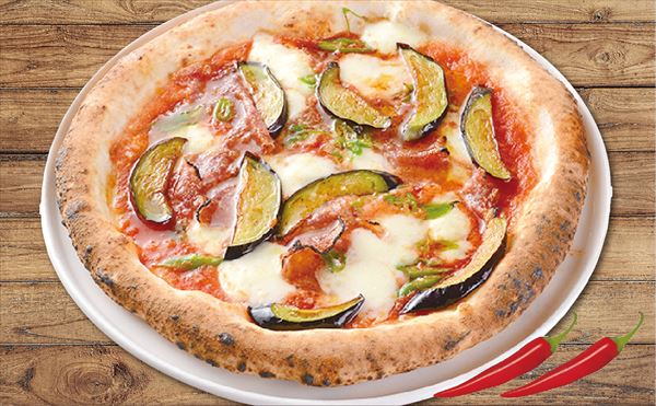 トマトソース・茄子・青唐辛子・ミラノサラミ・ニンニク・モッツアレラ